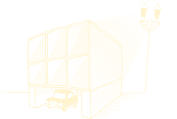 夜になると全面ガラス張りのオフィスから暖色光が漏れて、昼間とは違った顔が現れます。